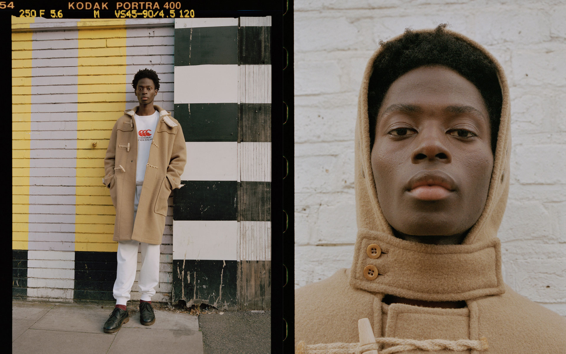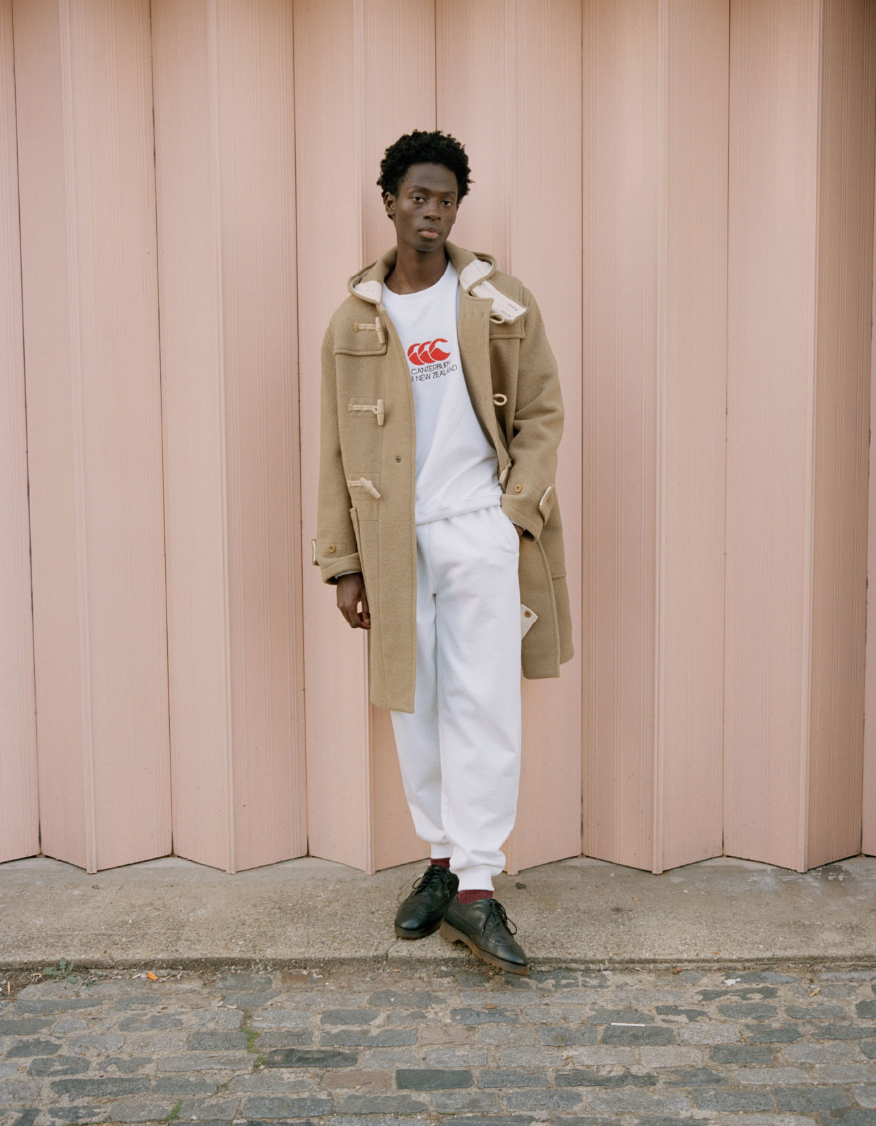 ラグビージャージにさらりと羽織っても様になるGloverallのダッフルコート。トラディショナルなアイテムながら、カジュアルな装いにも自然に馴染んでくれるGloverallの定番品です。Canterbury別注では、フード口や腰に使用している杉綾テープにライトベージュを採用。落ち着いたキャメルカラーのアクセントになっています。さらに、腰の杉綾テープ上には一枚一枚手作業でCanterburyのロゴがスタンピングされています。